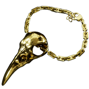 渡鸦头骨造型的金质项坠,其粗糙、凶悍、狂野的设计,让我们想起一位故人